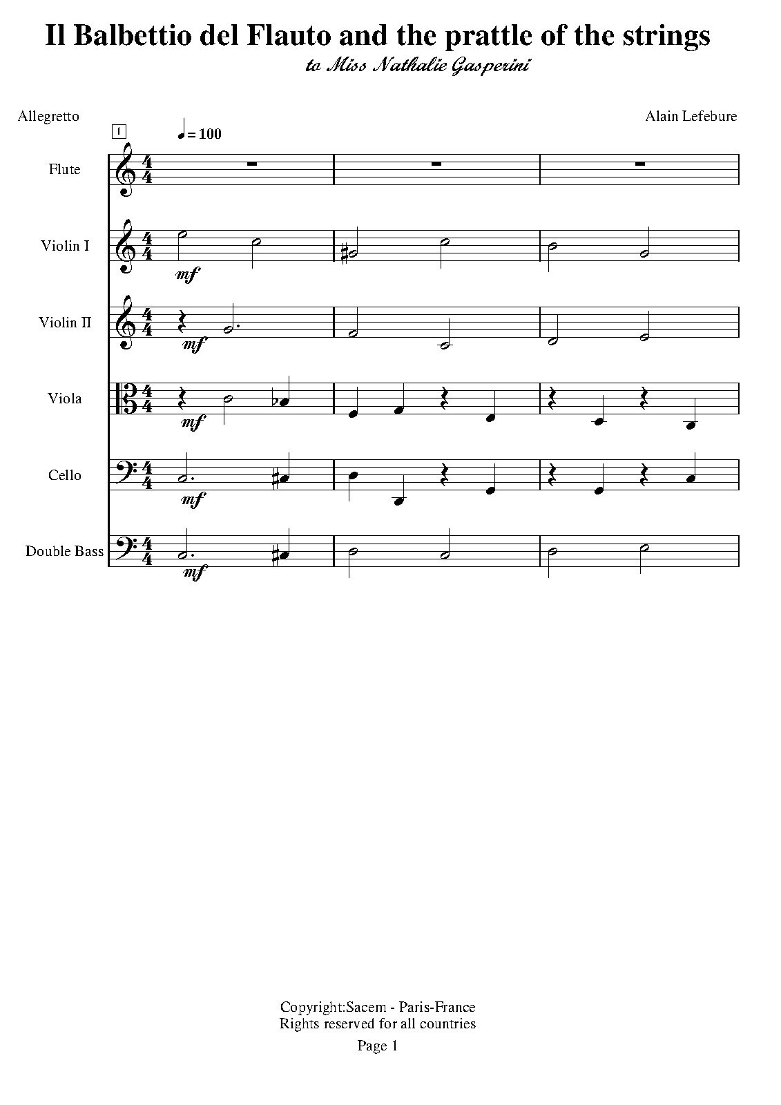 | Work Title | Il Balbettio del Flauto and the prattle of the strings |