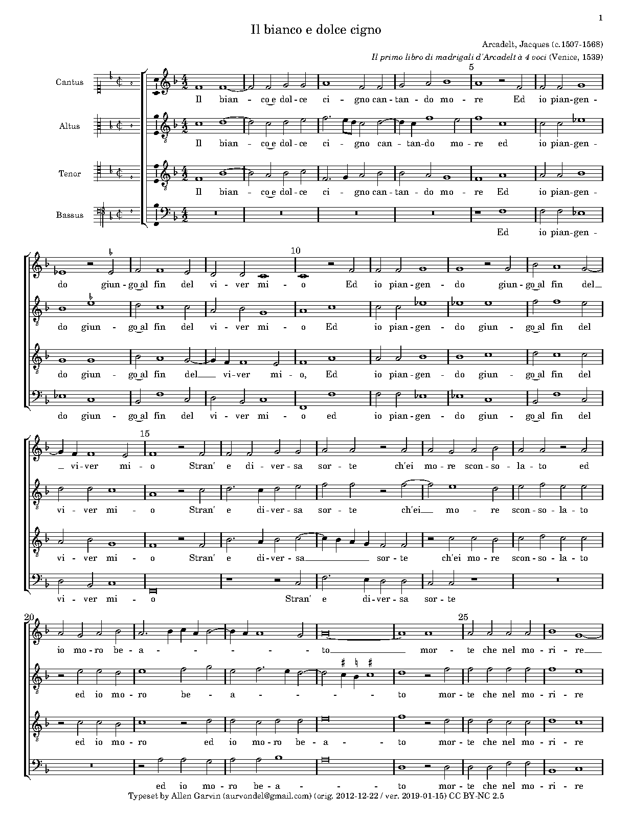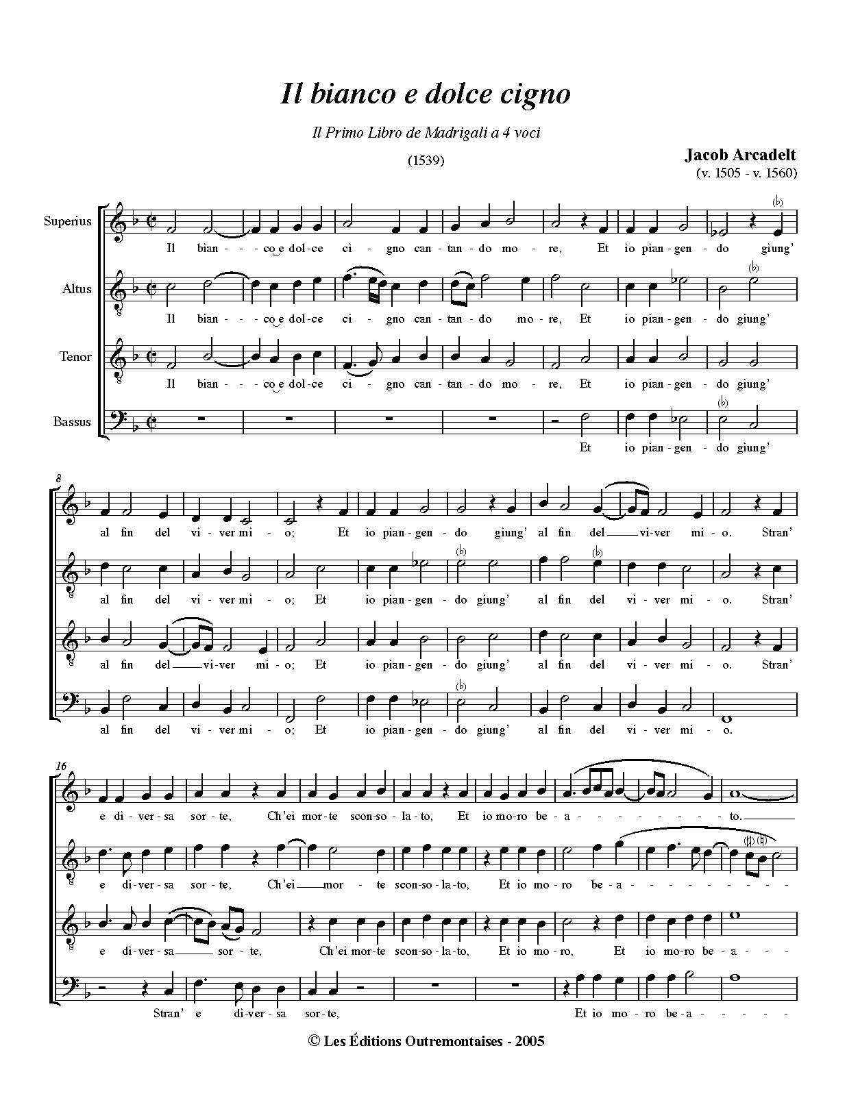 | First Publication | 1539 in Madrigali a 4 voci, Libro 1 (No.1) |