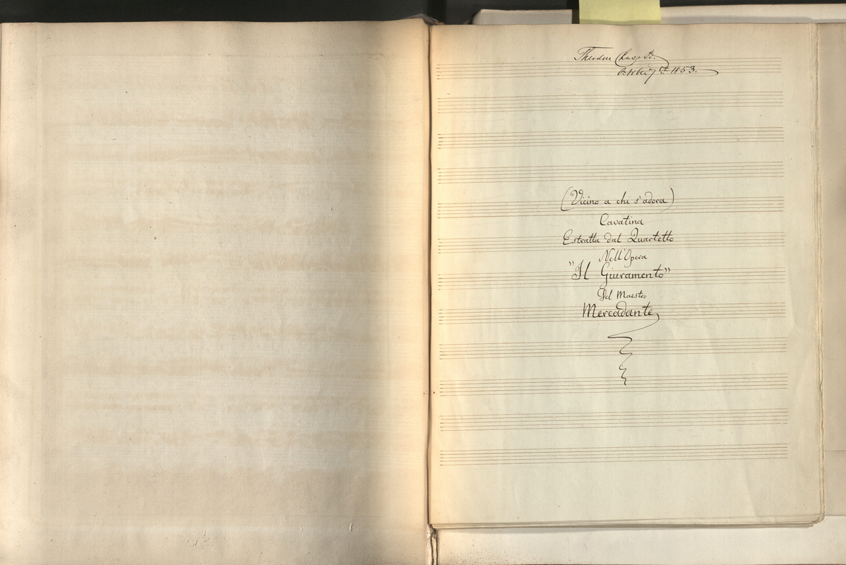 | Extra Information | "Also known as Le serment, as Amore e Dovere, and as Bianca und Elaisa". from Juilliard catalog entry for Oppelt-translated Launer vocal score of ca.1847. |