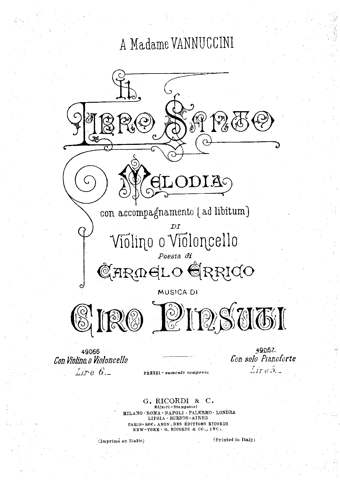 | Alternative. Title | Melodia con accompagnamento (ad libitum) di violino o violoncello |