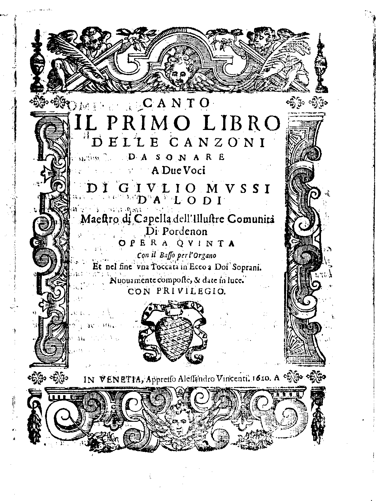 | Alternative. Title | Il primo libro delle canzoni da sonare a due voci [...] opera quinta |