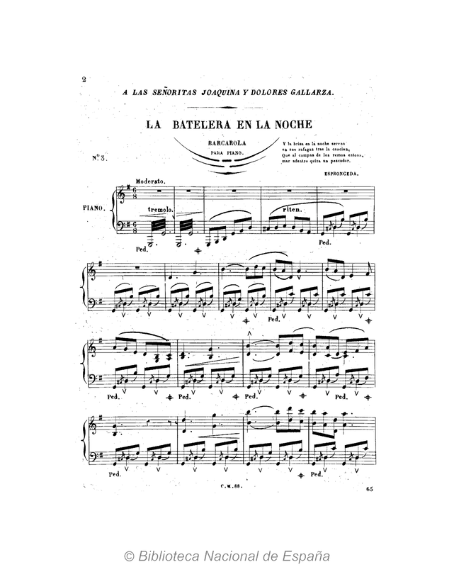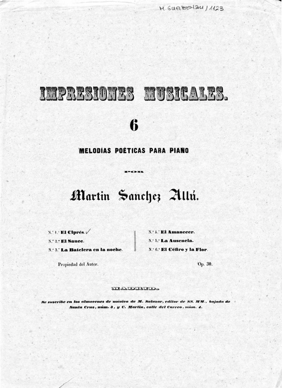| Dedication | Al la memoria de M.F.R. (El ciprés). With a few lyrics (compare) from José Selgas y Carrasco (1822–1882). A mi amigo Marzial del Adalid (El sauce). Ditto. |