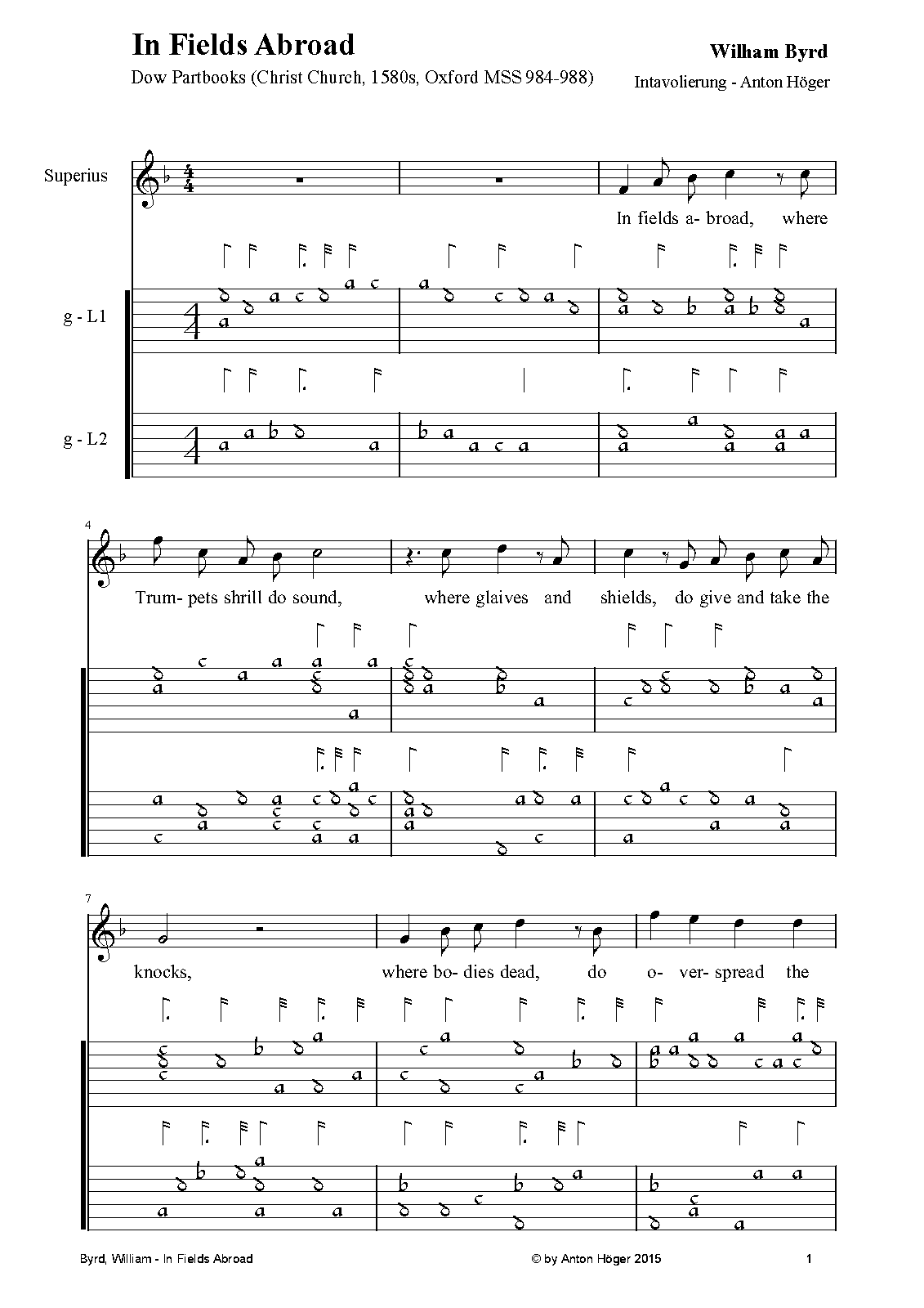 Intabulation in French lute-tablature (g-Lutes). If performed I would look forward about a small reference to my efforts.