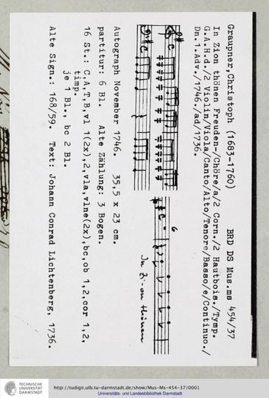 | Work Title | In Zion thönen Freuden-Chöre, GWV 1101/46 |