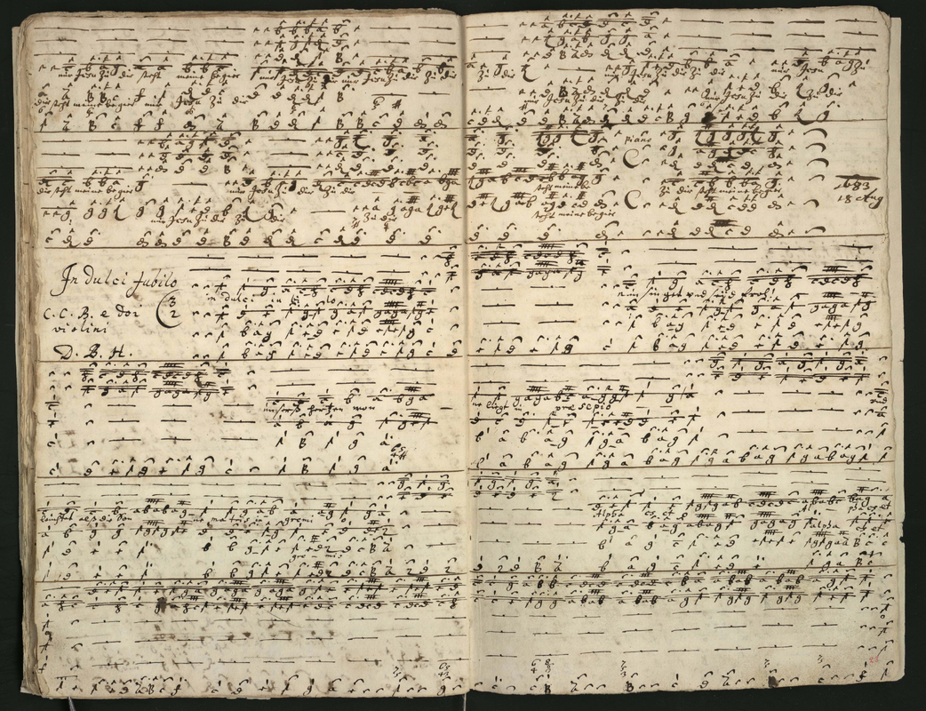| Instrumentation | 3 voices (SSB), 2 violins, continuo |