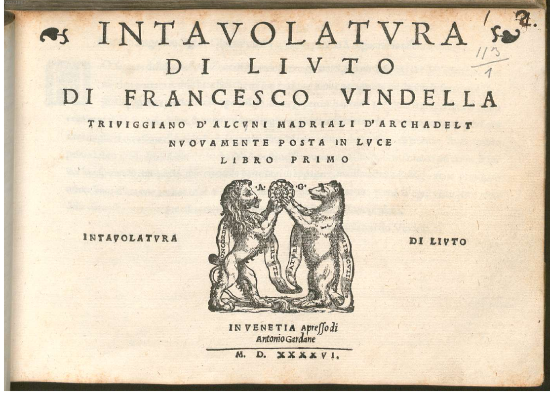 | Alternative. Title | Intabolatura di Liuto (...) triviggiano d'alcuni madriali d'Archadelt |