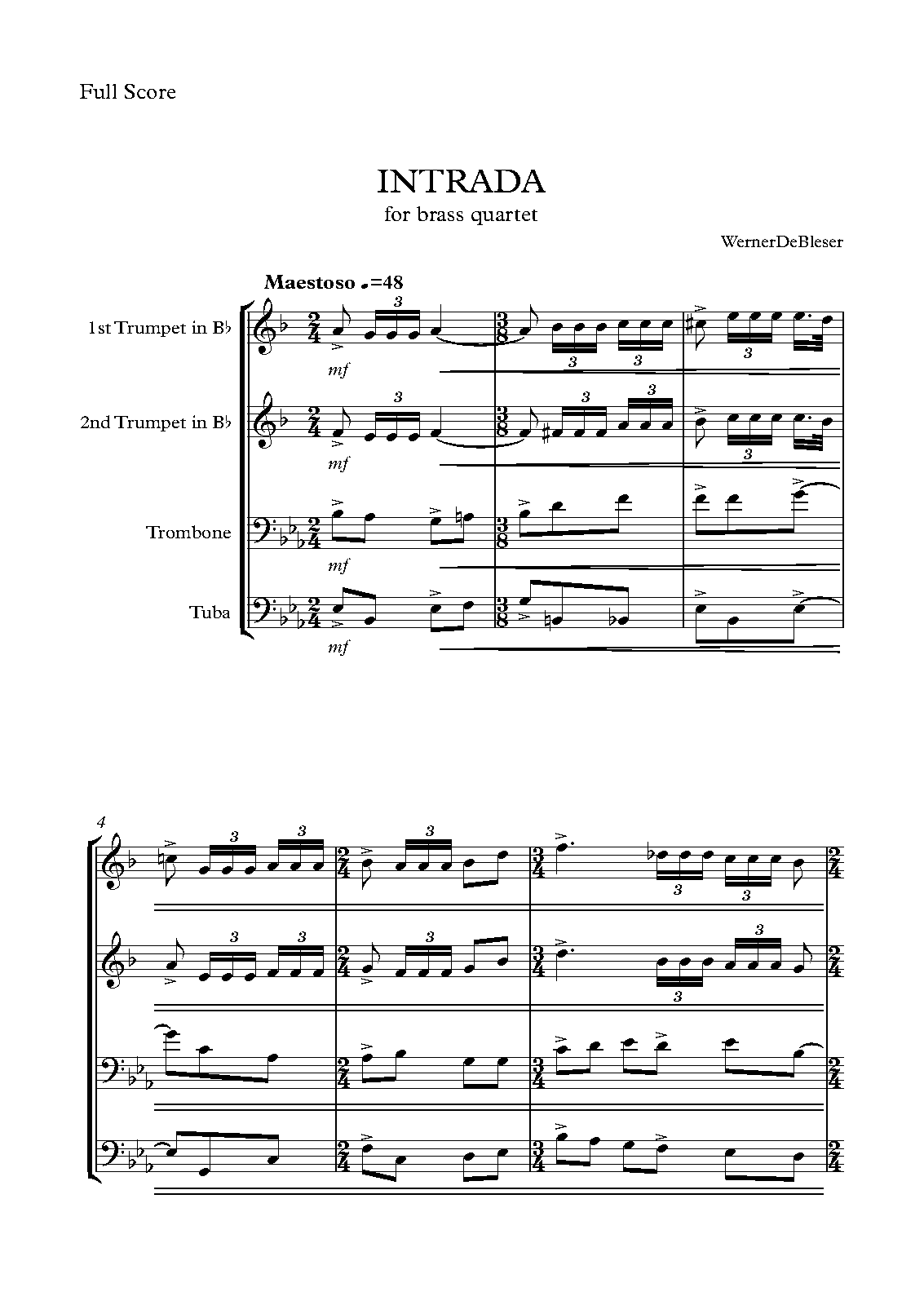 | Genre Categories | Intradas; For 2 trumpets, trombone, tuba; Scores featuring the trumpet; |