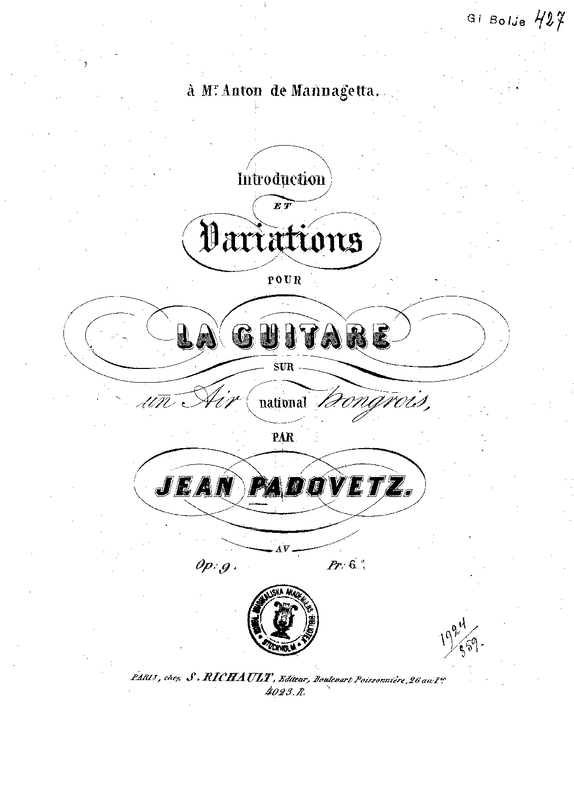 | Alternative. Title | Introduction & Variations sur un air national Hongrois |