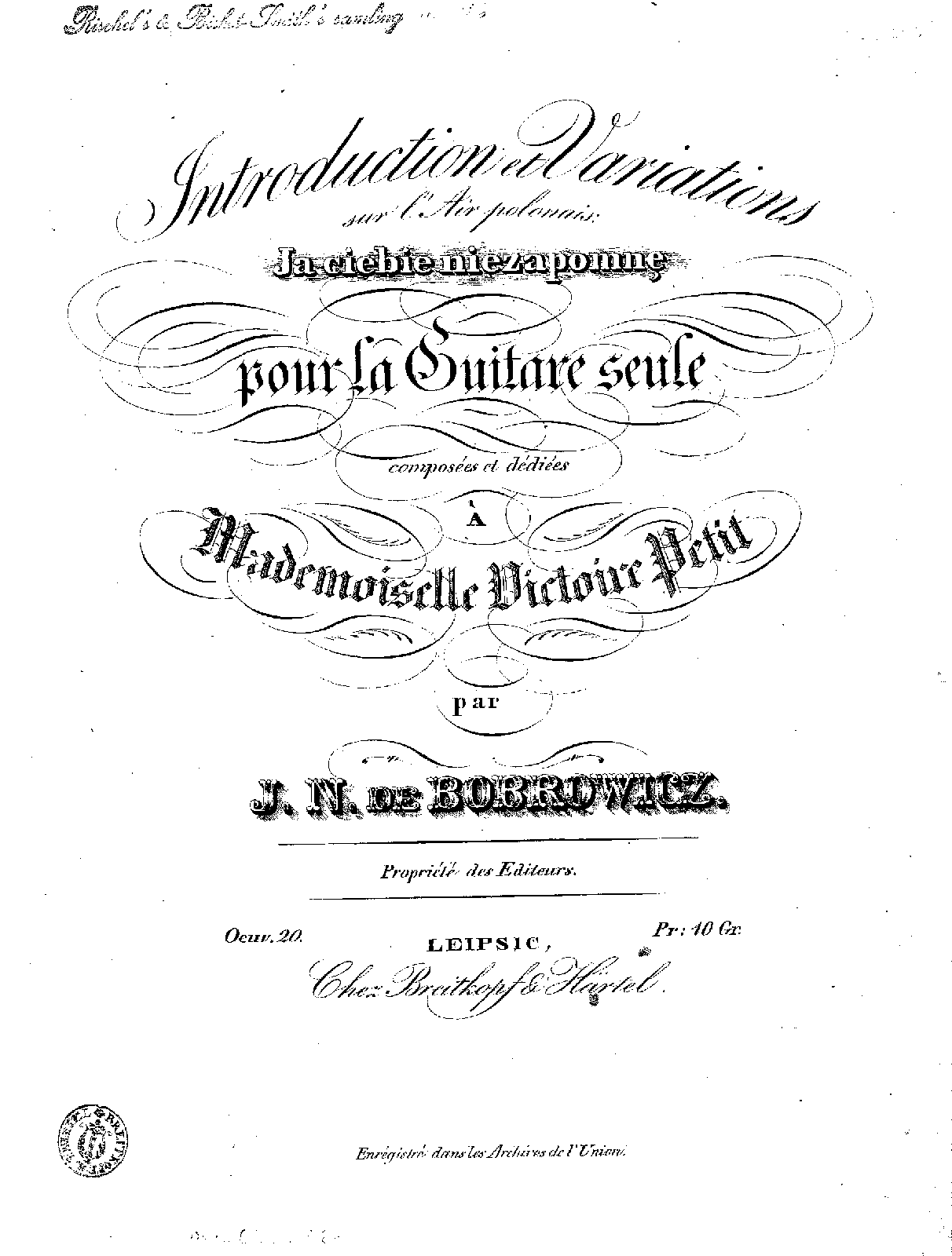 | Work Title | Introduction et variations sur l'air polonais, Op.20 |