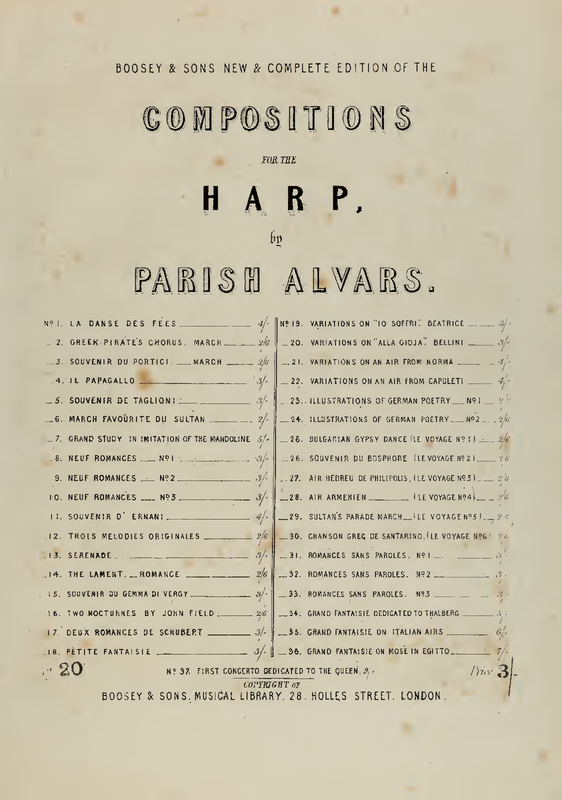 | Genre Categories | Variations; For harp; Scores featuring the harp; For 1 player |