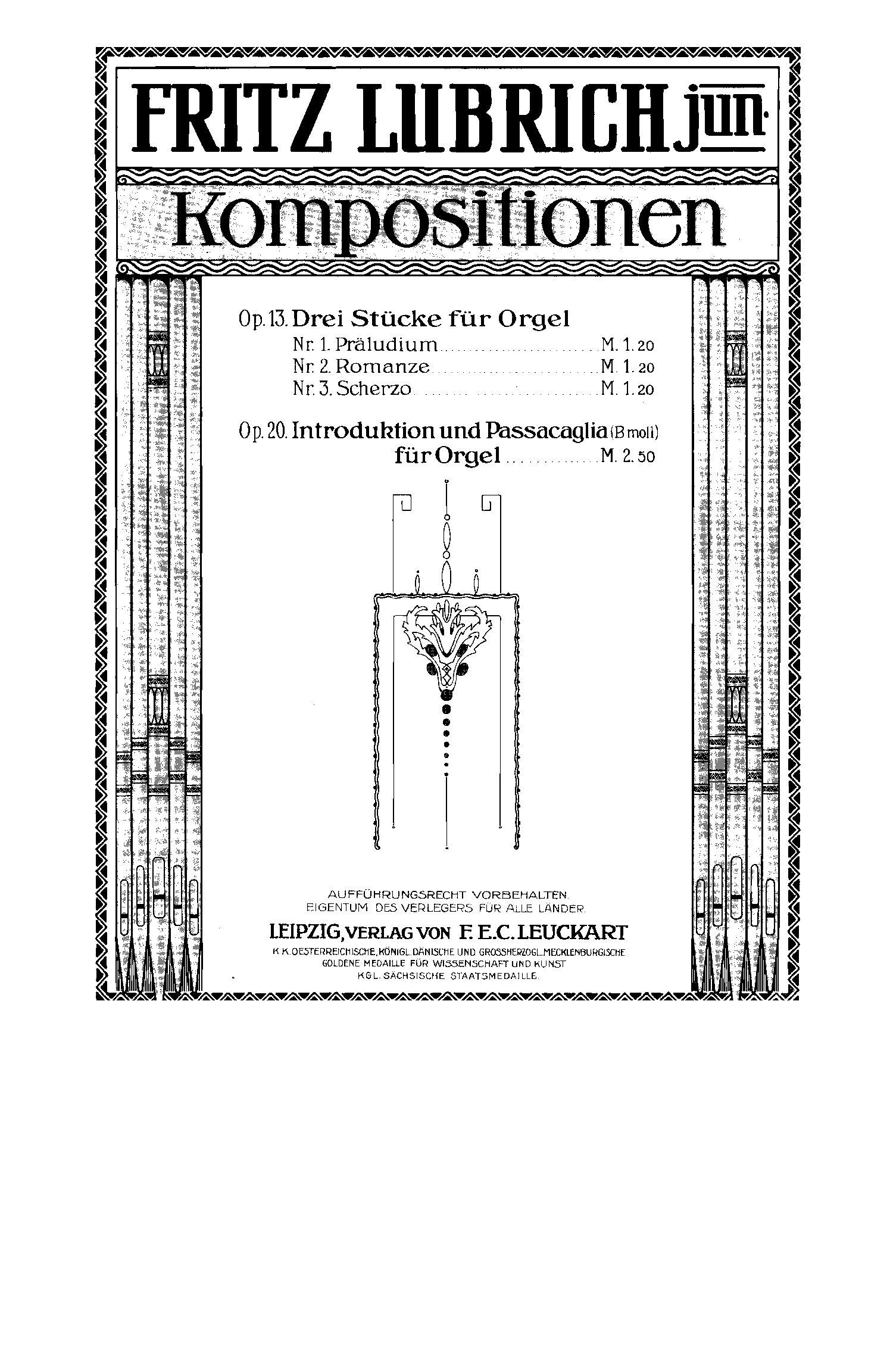| Dedication | Dem Organisten der Kaiser-Wilhelm-Gedächtnis-Kirche zu Berlin Hernn Walter Fischer (1872–1931) verehrungsvoll zugeeignet |