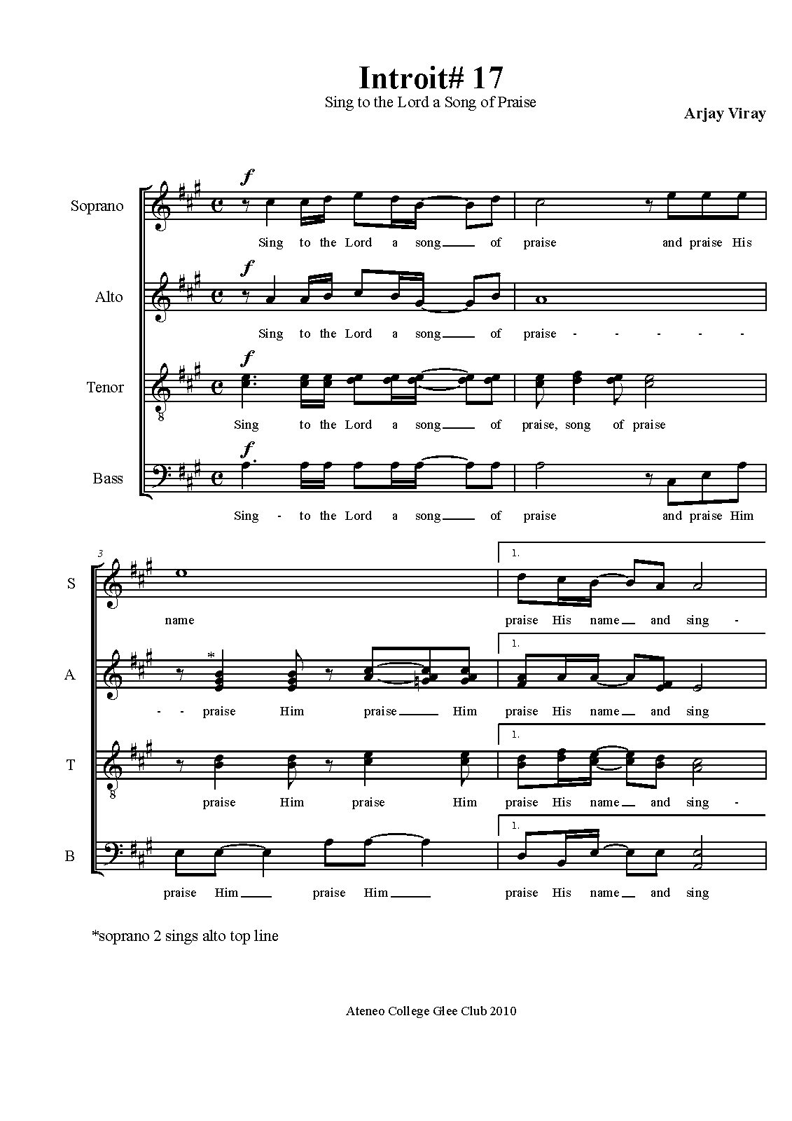| Alternative. Title | Sing to the Lord a Song of Praise |