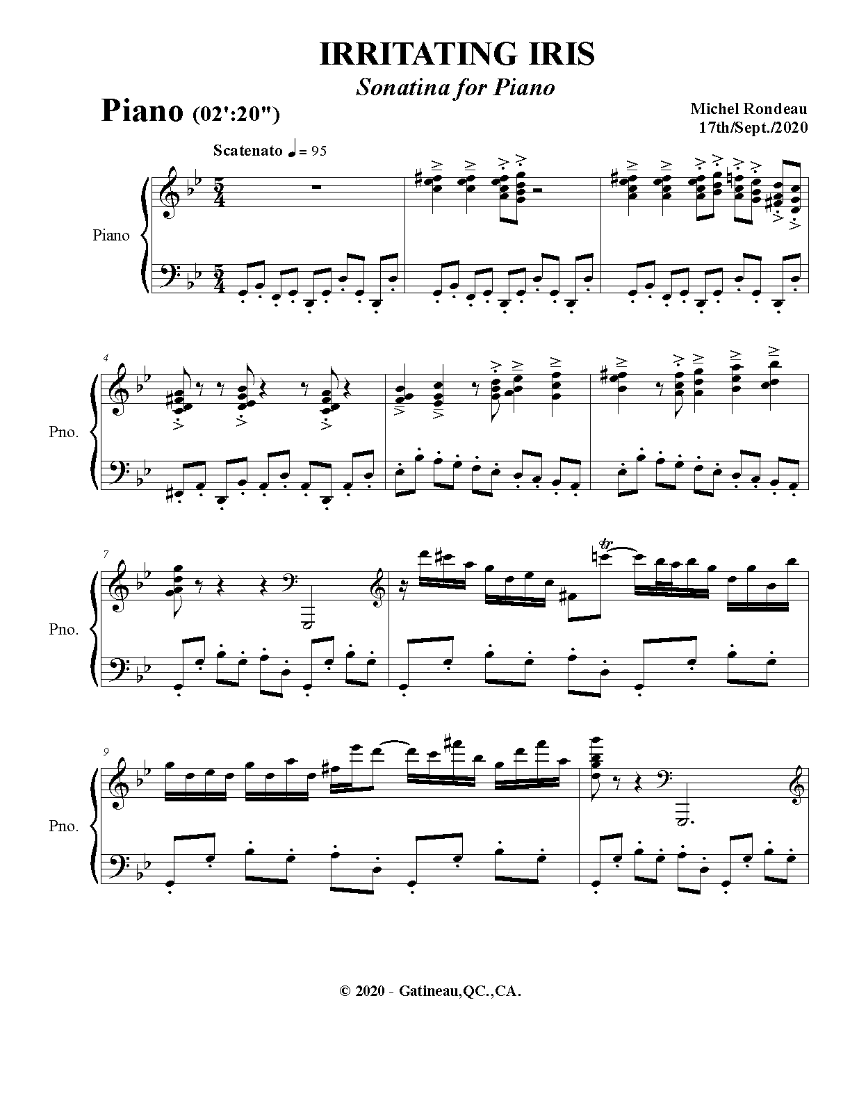 | Movements/SectionsMov'ts/Sec's | 1 sonatina in 3 parts |