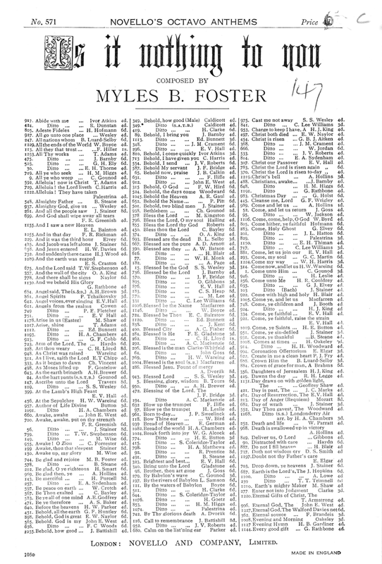 | Dedication | To the Lyndhurst Road Church Choir, Hampstead |