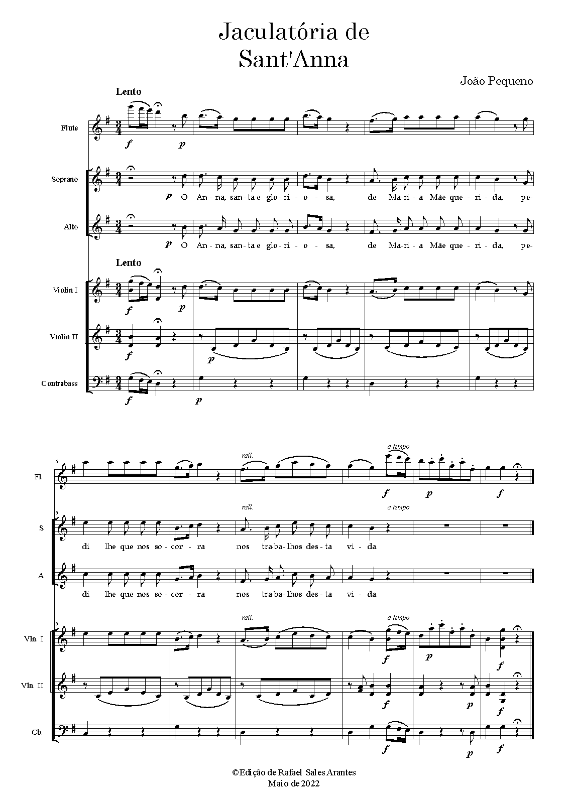 | Instrumentation | Soprano, Alto, flute, strings |