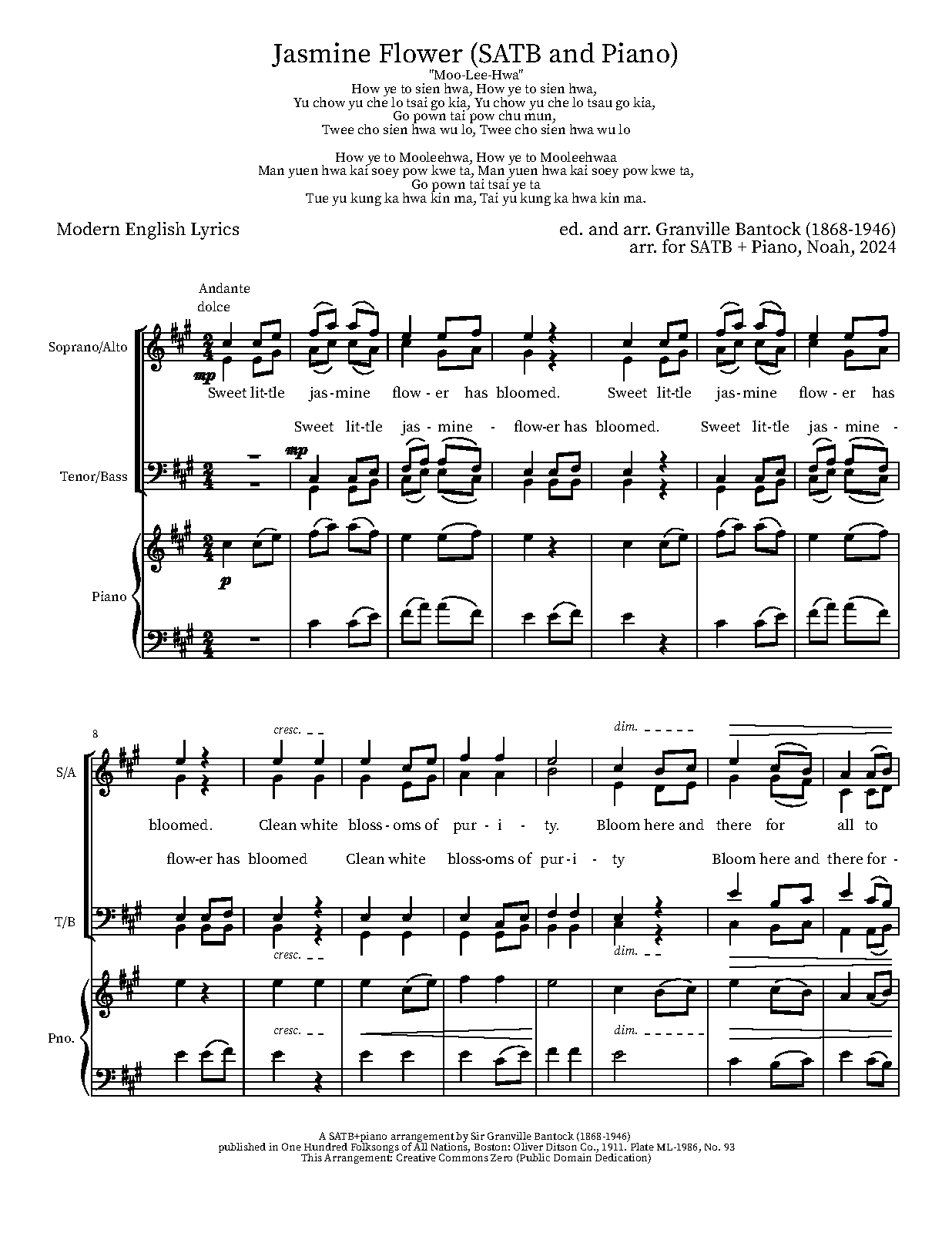 For Soprano, Alto, Tenor, Bass and Keyboard (Noah)