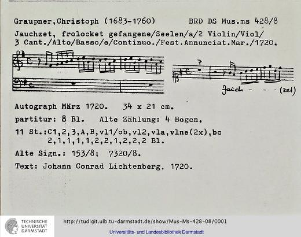 | Work Title | Jauchzet frohlocket gefangene Seelen, GWV 1170/20 |