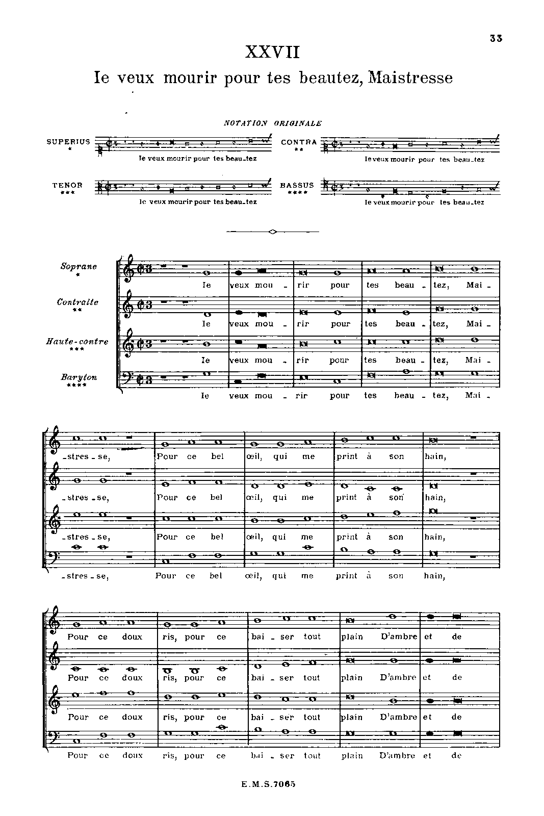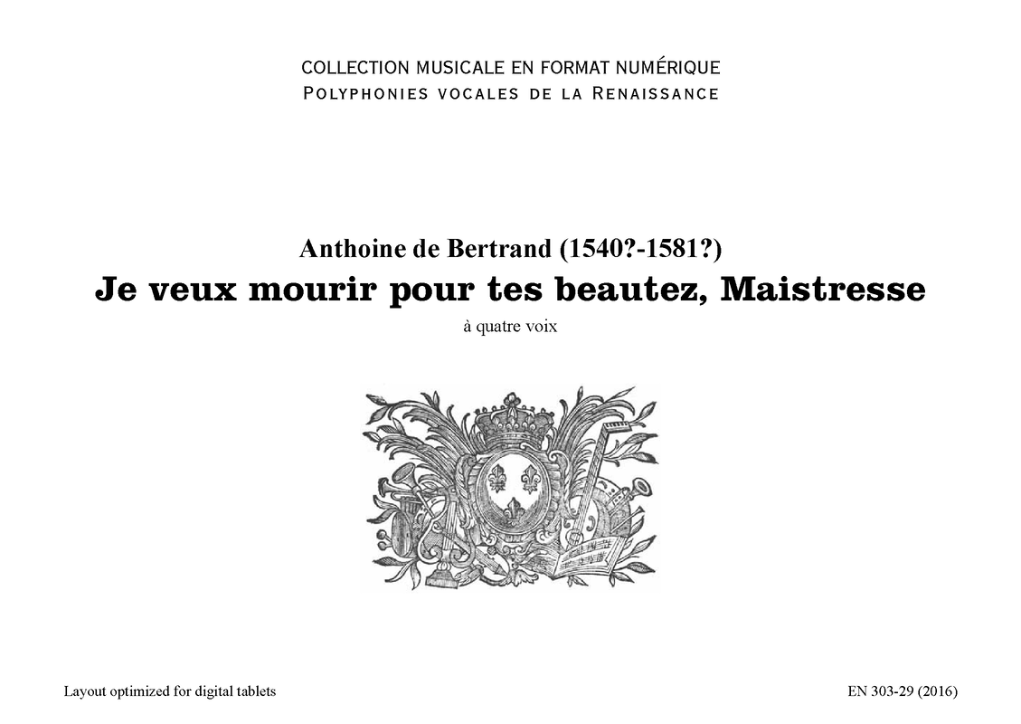 | Work Title | Je veux mourir pour tes beautez, Maistresse |