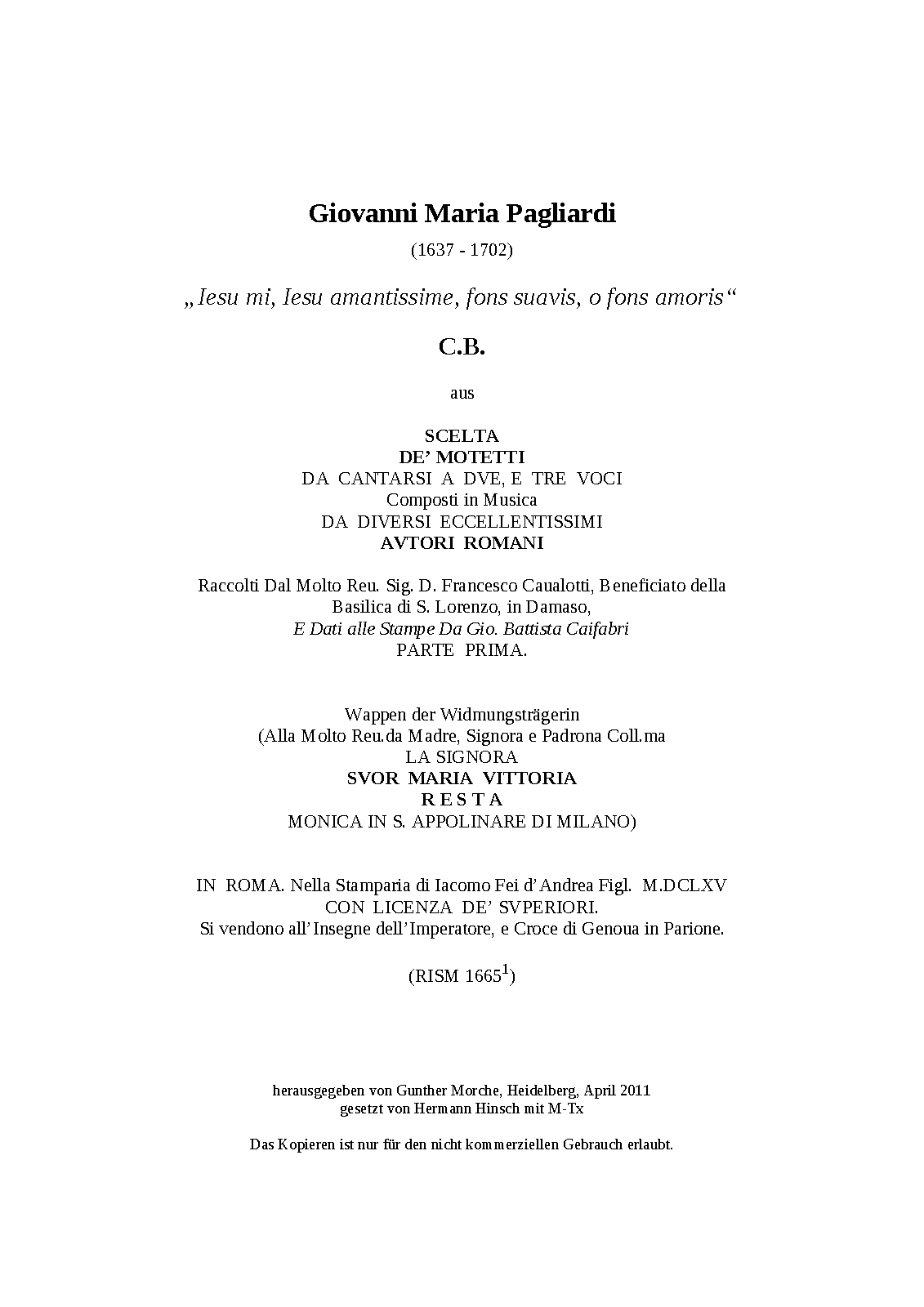| Genre Categories | Motets; For 2 voices, continuo; For voices with continuo; |