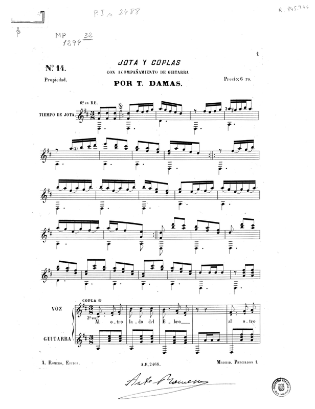 | Genre Categories | Jotas; Dances; For voice, guitar; |