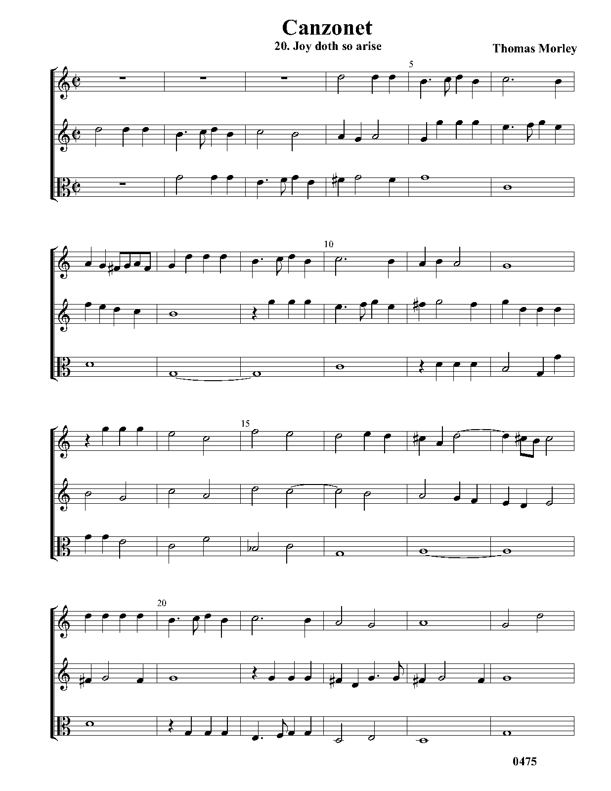 | Genre Categories | Canzonets; Songs; For mixed chorus; |