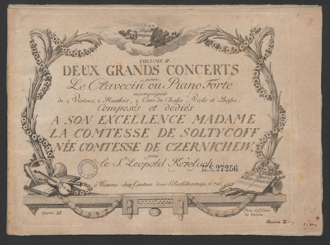 | Alternative. Title | Grand Concert pour le Clavecin ou Piano Forte accompagnes de 2 Violons, 2 Hauttbois, 2 Cors de Chasse, Viole et Basso |