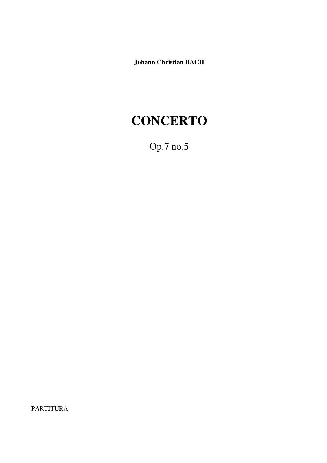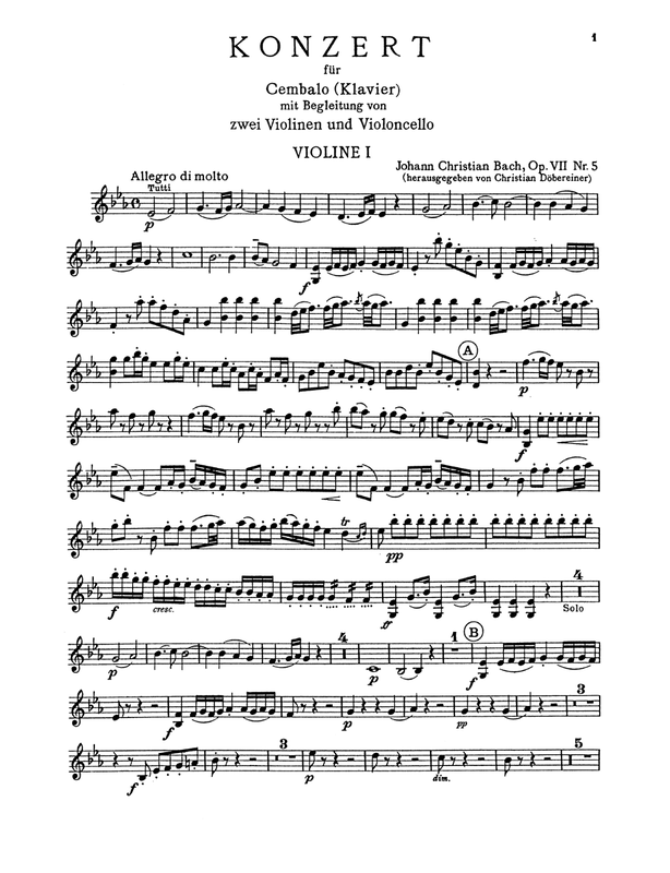 Misc. Notes From the uploader's library. Cadenza based on J.C. Bach's piano sonatas provided by the editor (see his foreword). Basses are not labelled on Cellos part but assumed to be played in a trio for 2 violins and cello.