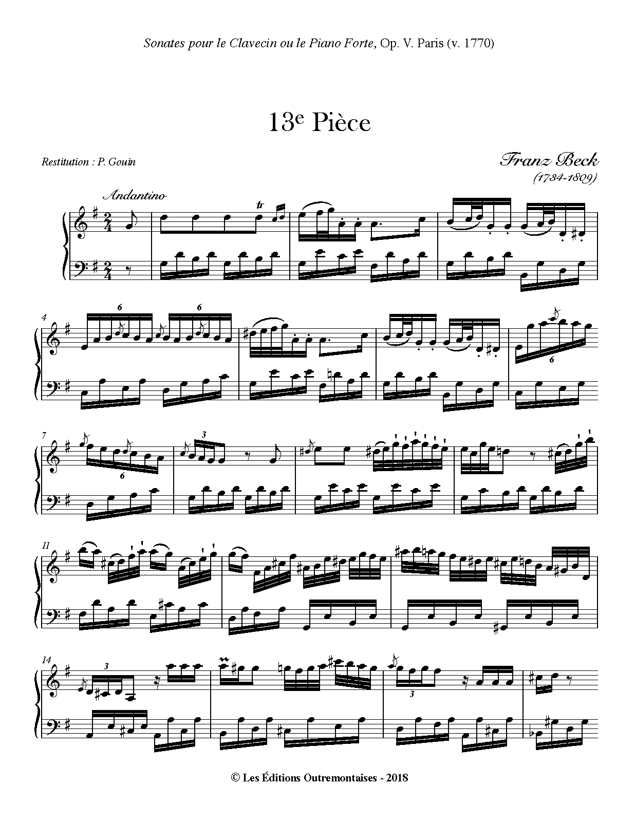 | Extra Information | This piece is to be followed by the Minuetto (14e Pièce). |