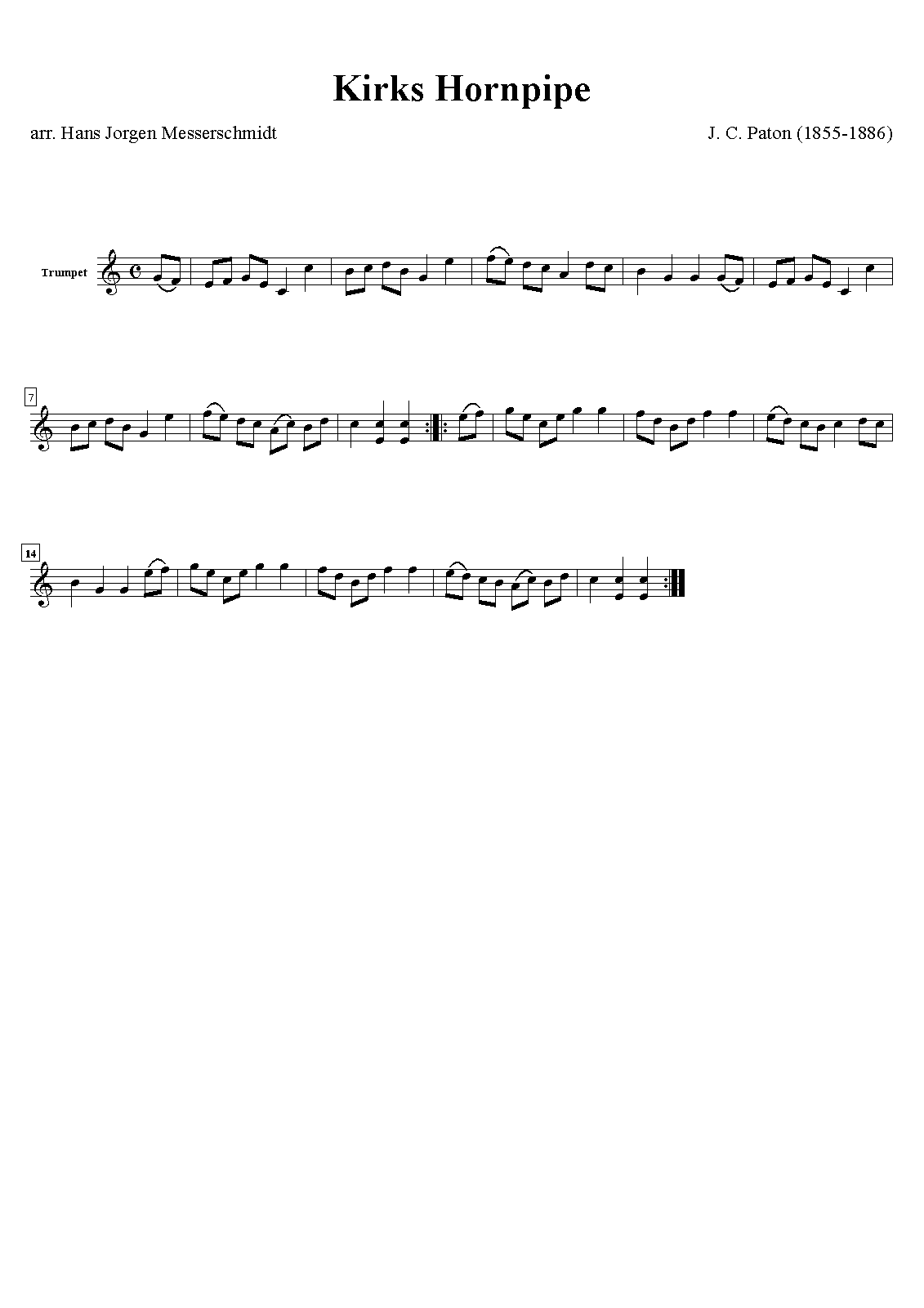 Though Messerschmidt cites the Caledonia Collection, and says James Crooks Paton is the composer, this hornpipe is not in that collection, and the one collection IMSLP has that contains it (the Honeyman's Collection listed below) does not list anyone as the composer.