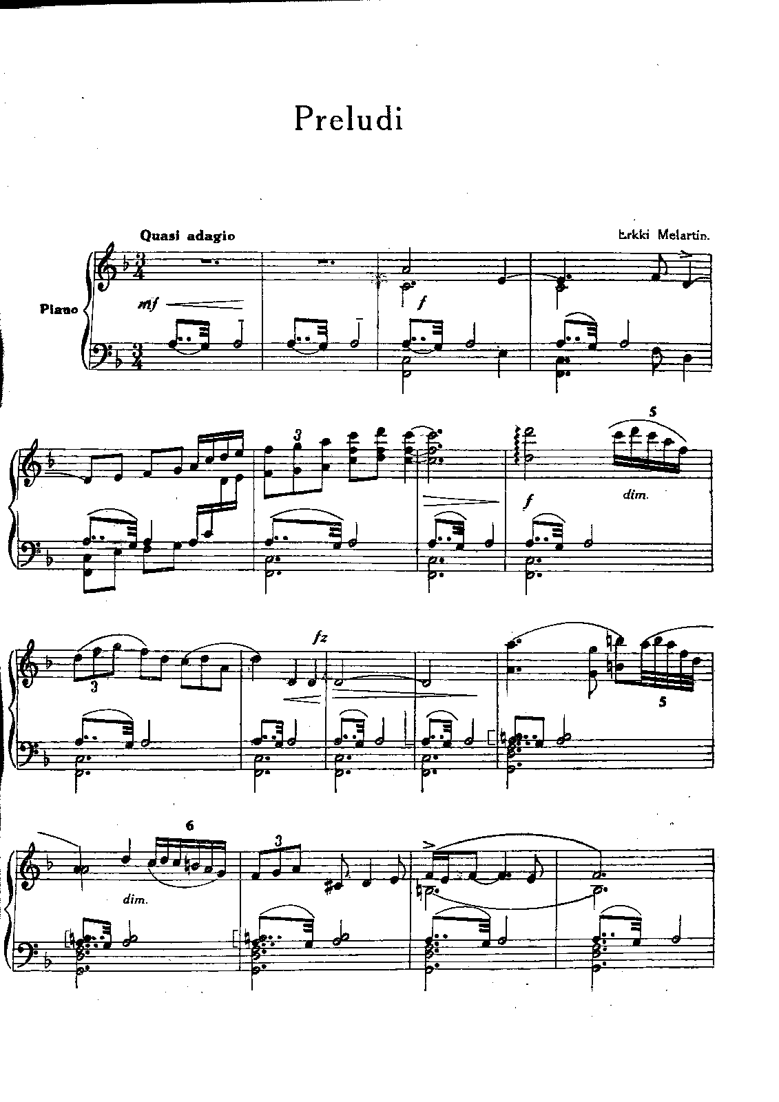 - Preludi (Quasi adagio, F major) - added in 1925