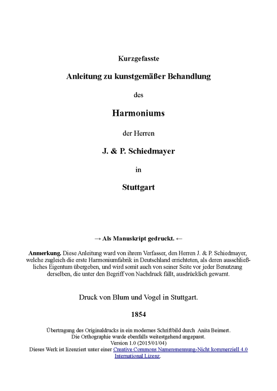 | Work Title | Kurzgefasste Anleitung zu kunstgemäßer Behandlung des Harmoniums |