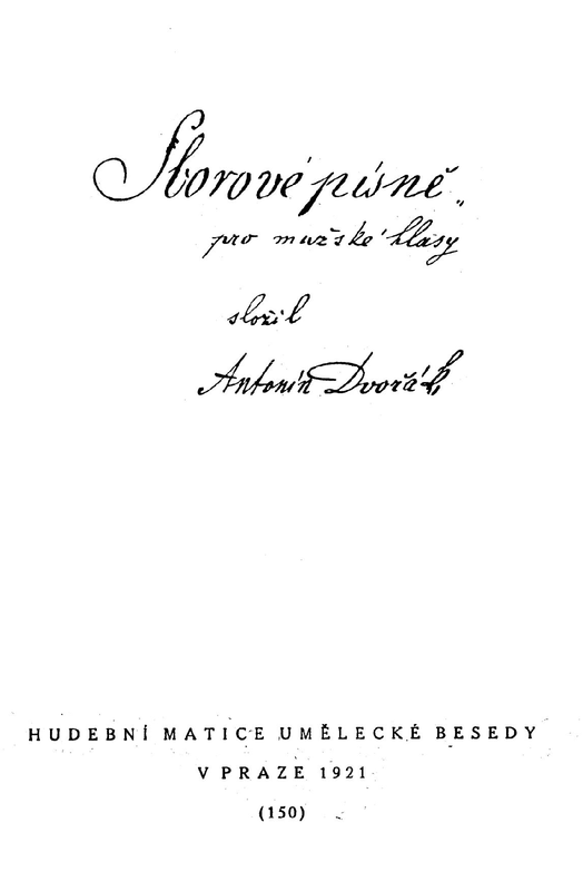 According to antonin-dvorak.cz, the 4th chorus is not yet published. The first edition preface (printed in the scan on this page) notes that manuscripts for this work are missing, but transcriptions used by various singing societies still exist and were the basis for the first edition (of Nos.1-3). The copies of the transcriptions have title Kytice z českých národních písní, op. 41 (Bouquet of Czech National Songs), different from the first edition title Sborové písně pro mužské hlasy as found on the manuscripts for B.66. Despite the transcriptions' title having Op.41, that opus was not used for publication of this work, so this page will not list it. The published Op.41 is Scottish Dances.