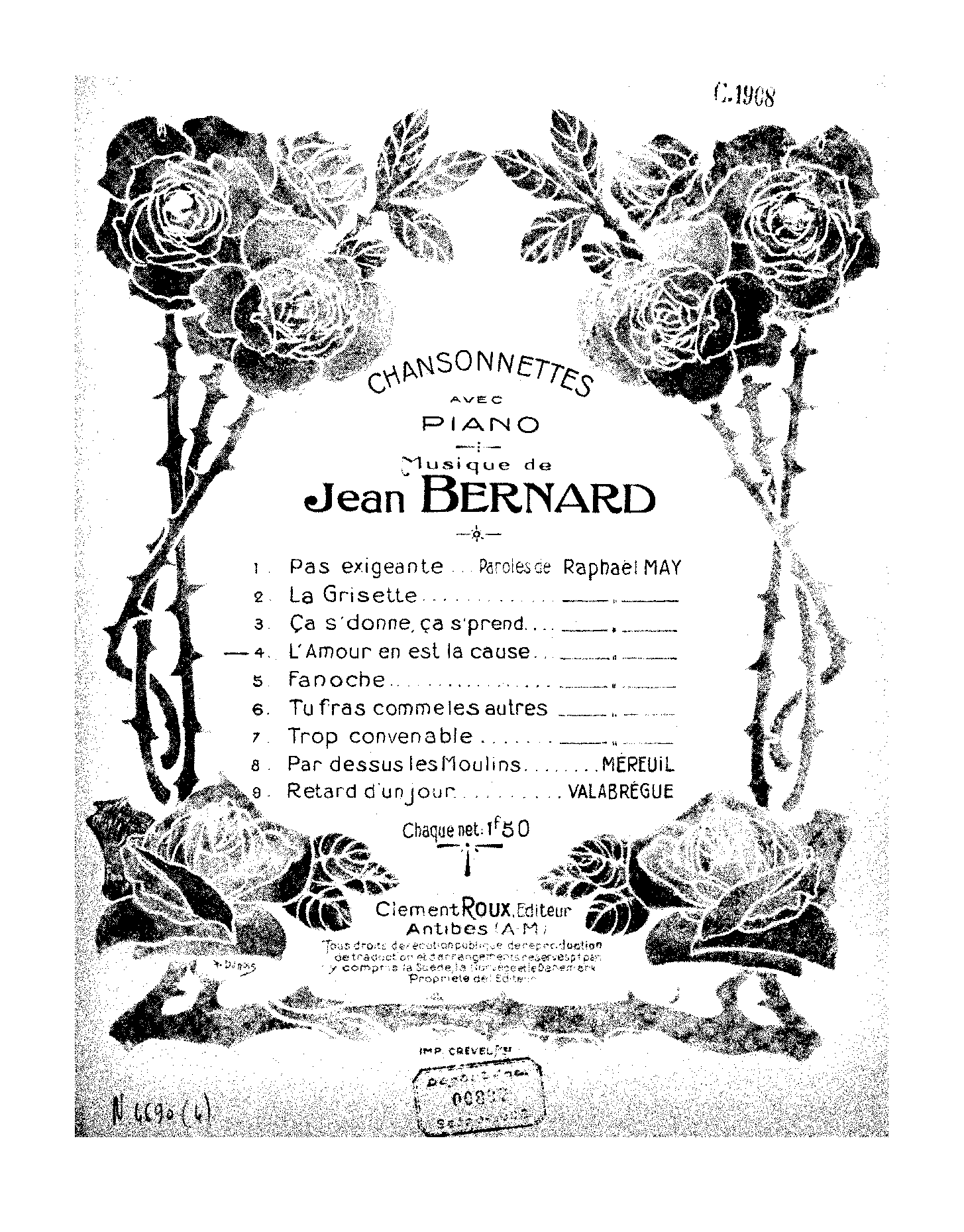 | Genre Categories | Chansons; Songs; For voice, piano; |