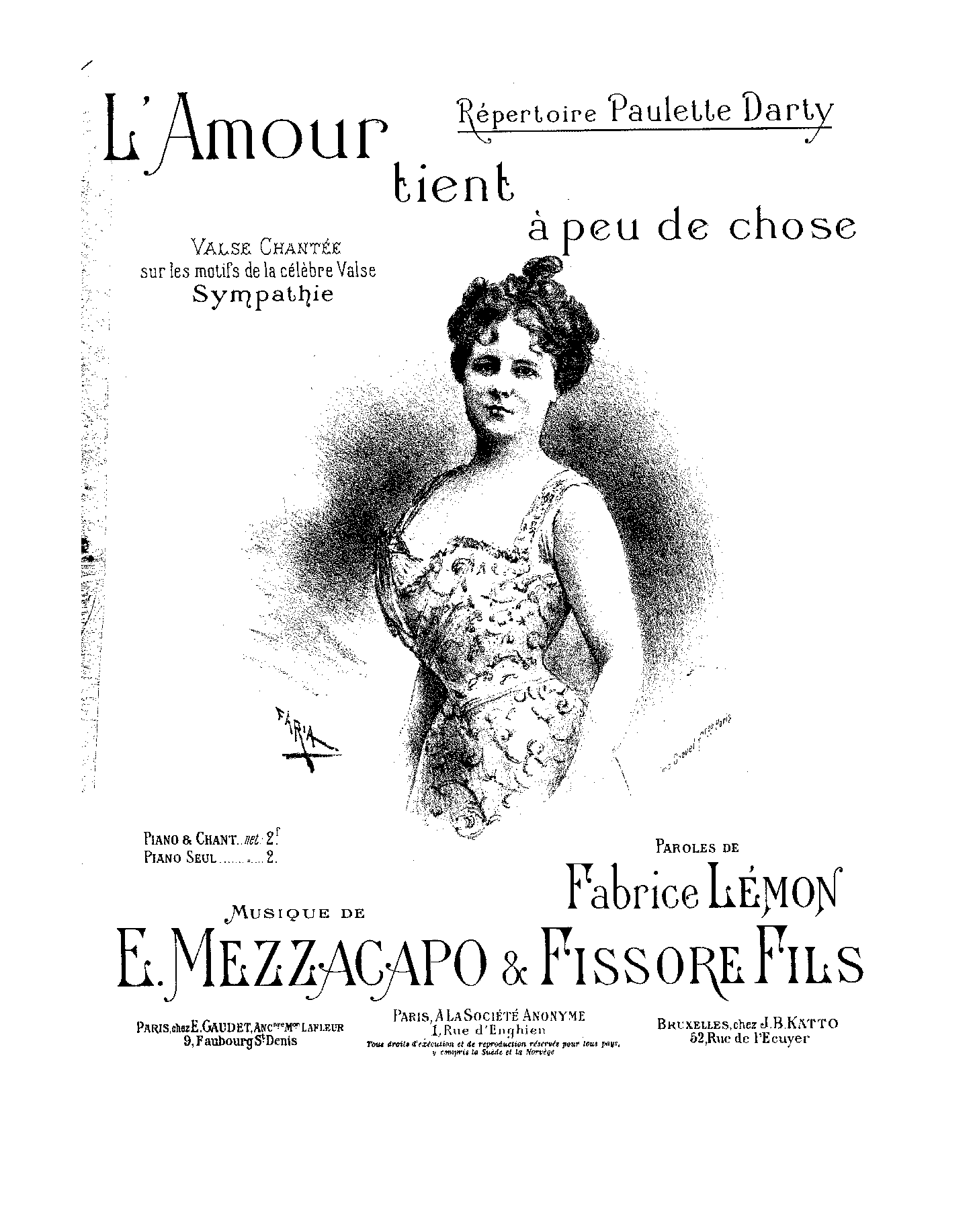 | Related Works | Based on Mezzacapo's earlier waltz for piano Sympathie, composed in collaboration with Fissore, fils. |