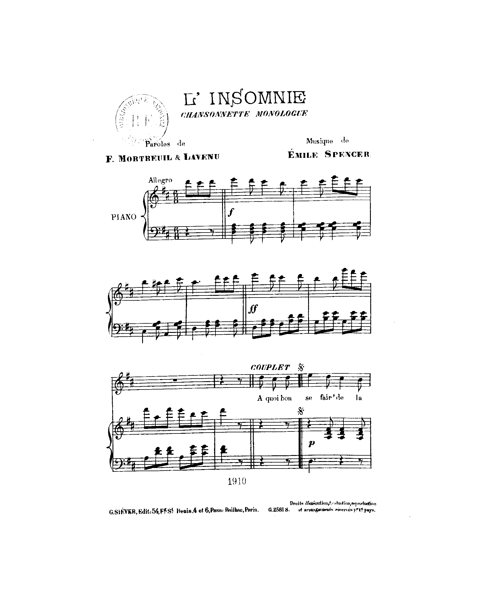 | Librettist | Félix Mortreuil (1855–1928) Lavenu (?) |