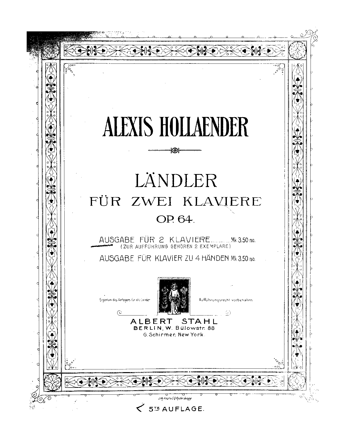 | Genre Categories | Landler; For 2 pianos; Scores featuring the piano; For 2 players |