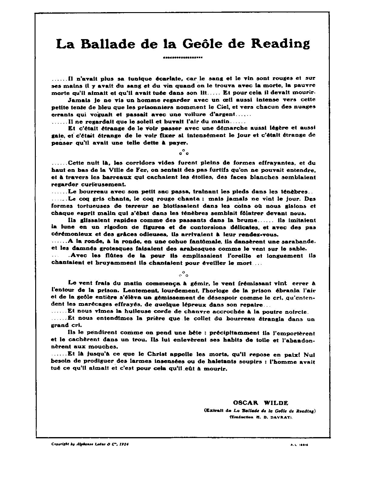 Inspiré de « La Ballade de la Geôle de Reading » (ca.1898) d'Oscar Wilde.