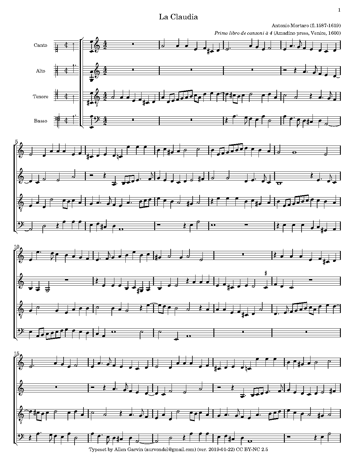| First Publication | 1600 in Canzoni da sonare a 4 voci, Libro 1 (No.11) |