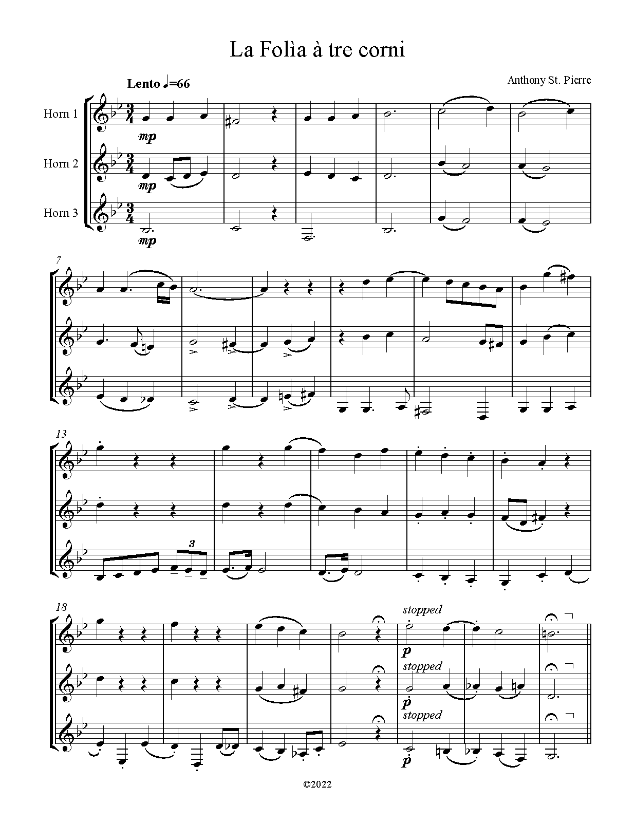 | Alternative. Title | La Folia for Three Horns |