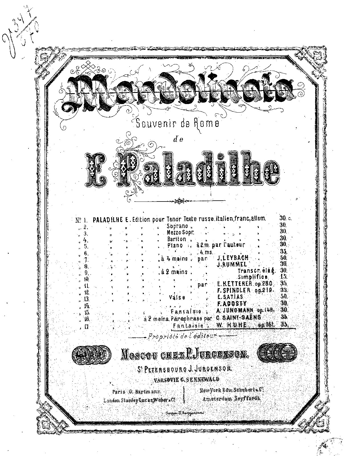 | Related Works | Based on Mandolinata by Émile Paladilhe |