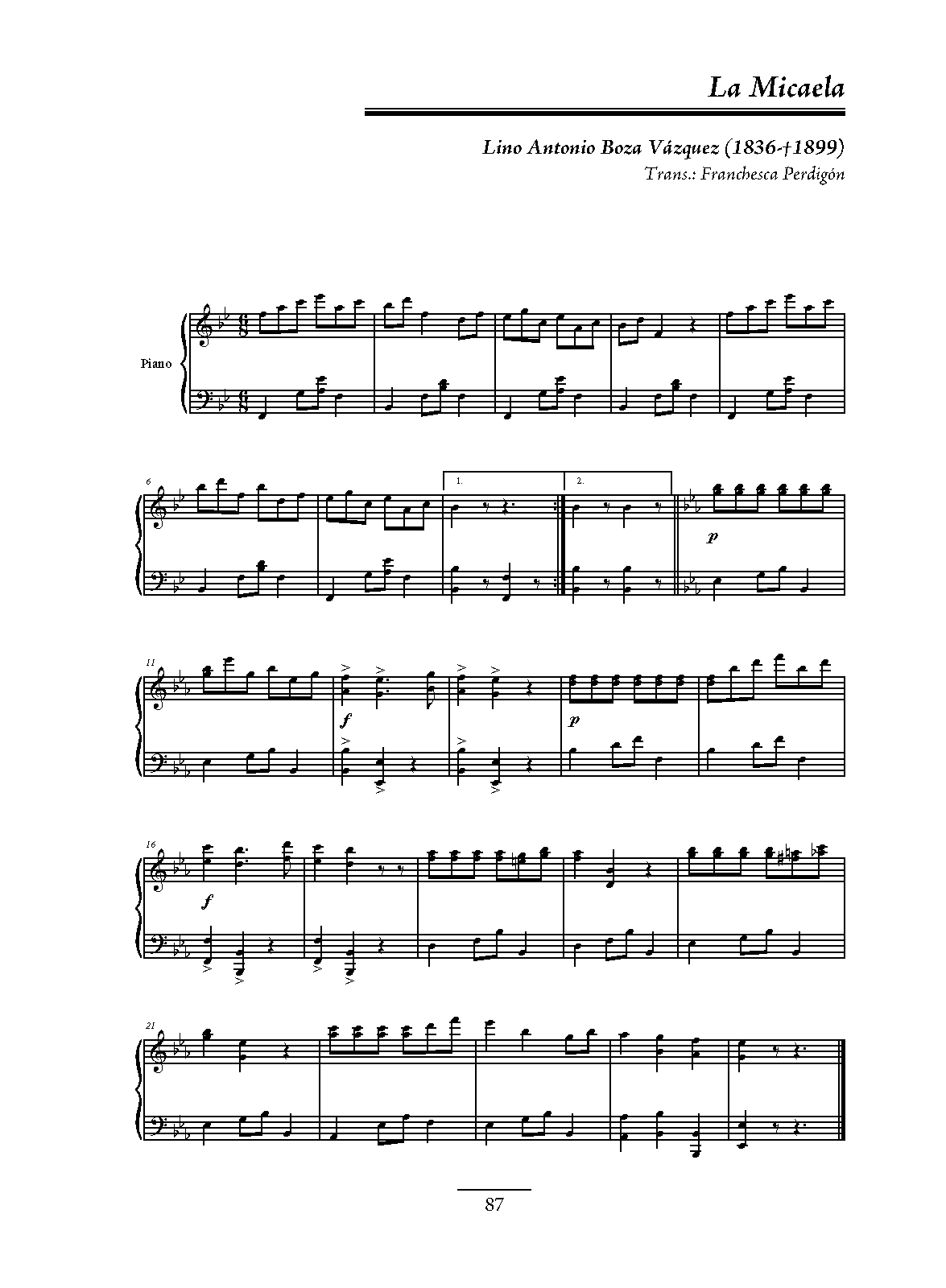 PERDIGÓN, Franchesca (2015) Música de Salón de Santiago de Cuba, siglo XIX. Danzas para Piano. Ed. Miriam Escudero and María Antonia Virgili. Ediciones Cidmuc, Oficina del Historiador de la Ciudad de La Habana, Universidad de Valladolid. ISBN 978-959-7216-43-8