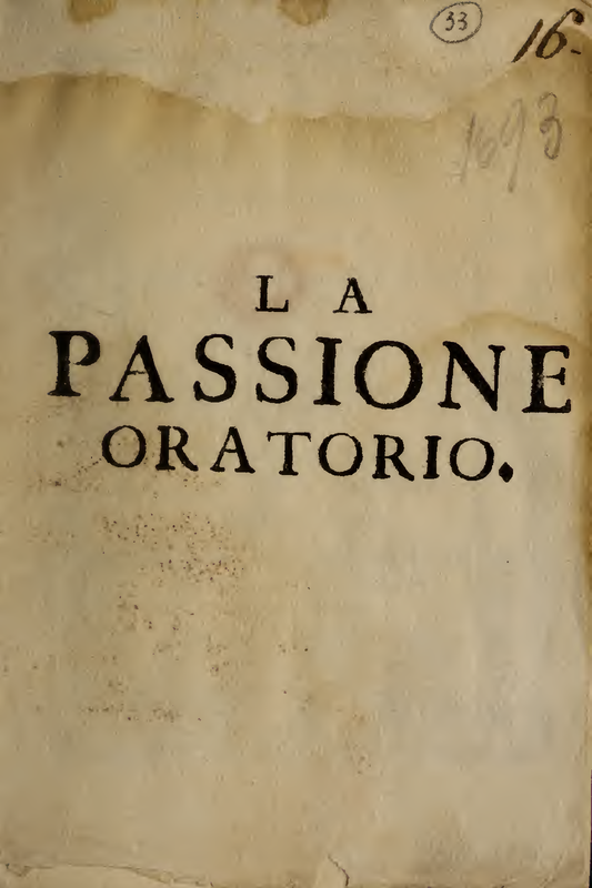 Alternative. Title Oratorio a 5 voci, con istromenti, in due parti con coro