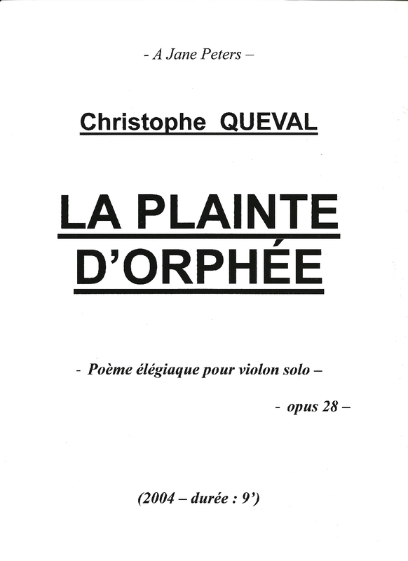 La Plainte d'Orphée, Op.28 (Queval, Christophe)
