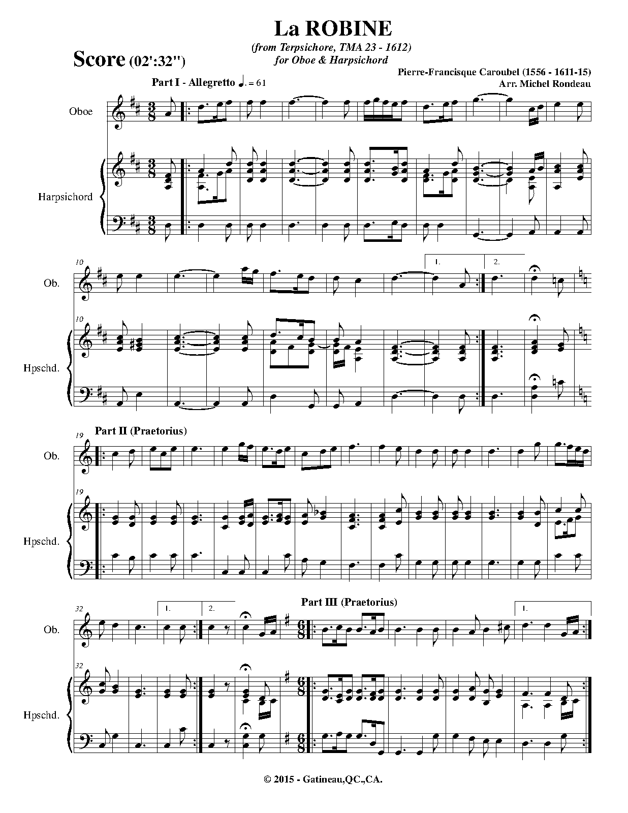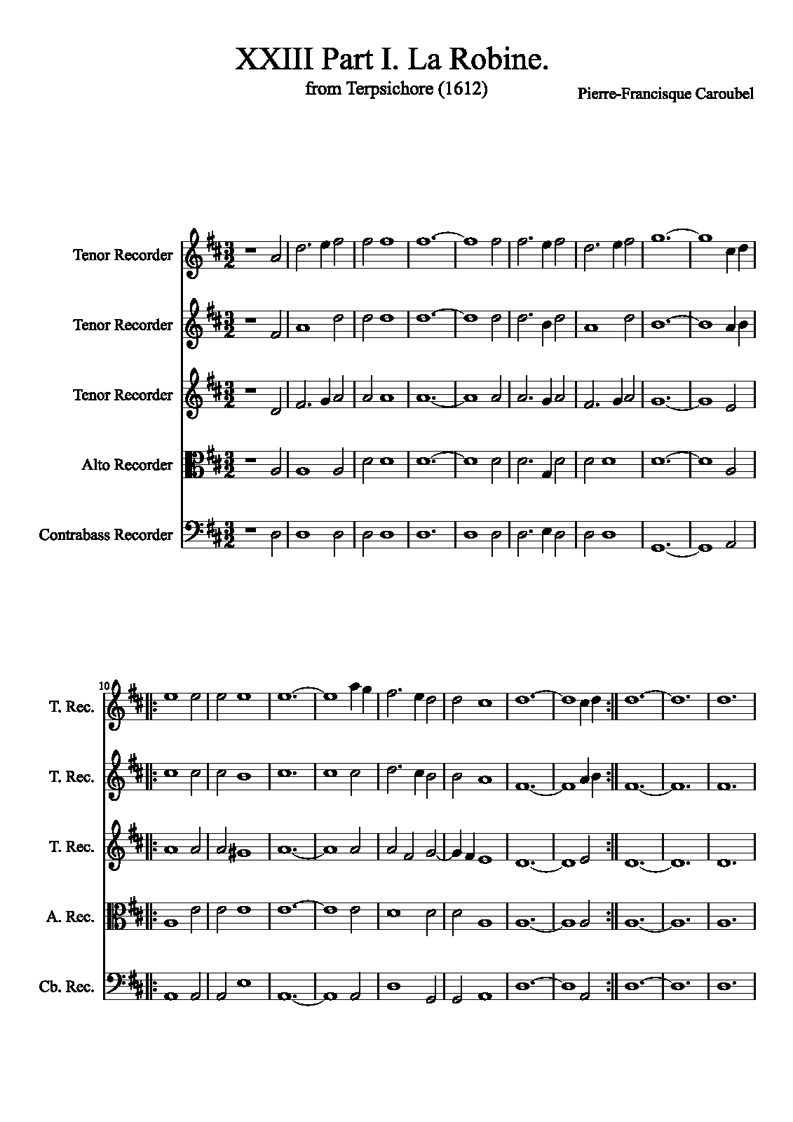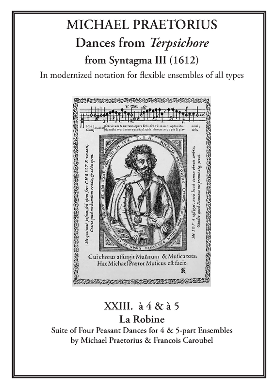 | Extra Information | These pieces were assembled and arranged by Praetorius for his 1612 collection. It is unknown how many, or if any, of the works in the collection were actually composed by Praetorius as opposed to being popular dance tunes arranged by him. The instrumentation is not specified in the original, and simply listed as "à 5" (Part I) or "a 4". (Parts II-IV) |