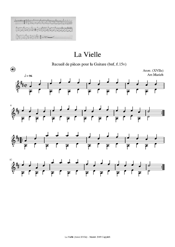 | Extra Locations | Included in Recueil de pièces pour la guitare (BNF, f.15v) |