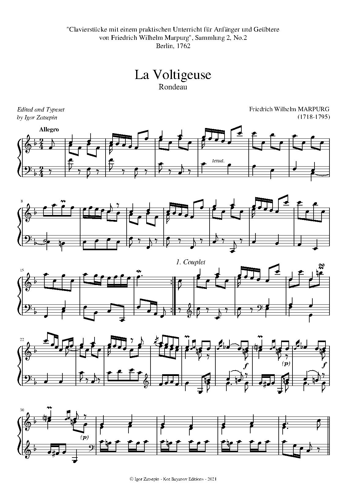 | Related Works | "Clavierstücke mit einem praktischen Unterricht für Anfänger und Geübtere von Friedrich Wilhelm Marpurg", Sammlung 2, No.2, Berlin, 1762 |