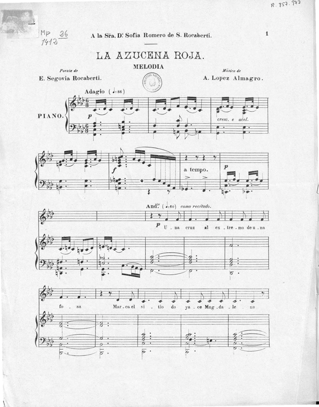 | Dedication | A la Sra. Dª. Sofía Romero de S. Rocaberti |