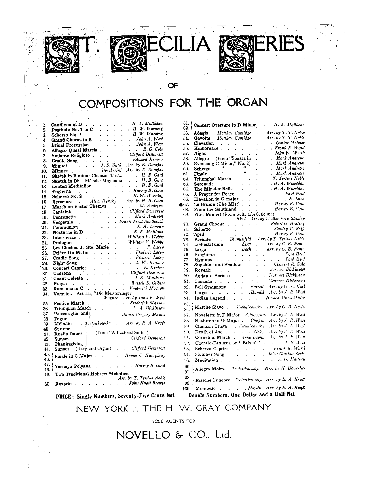 New York: H. W. Gray, 1916. Plate St. Cecilia No.67.