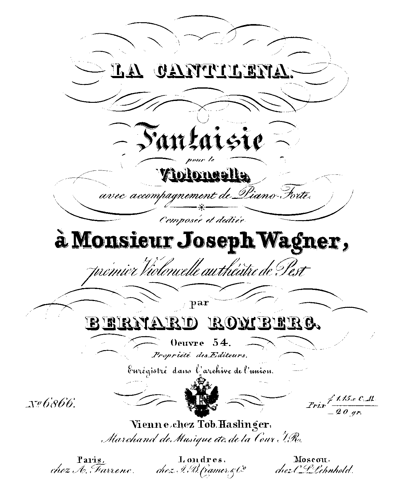 | Dedication | à Monsieur Joseph Wagner, premier Violoncelle au théâtre de Pest |