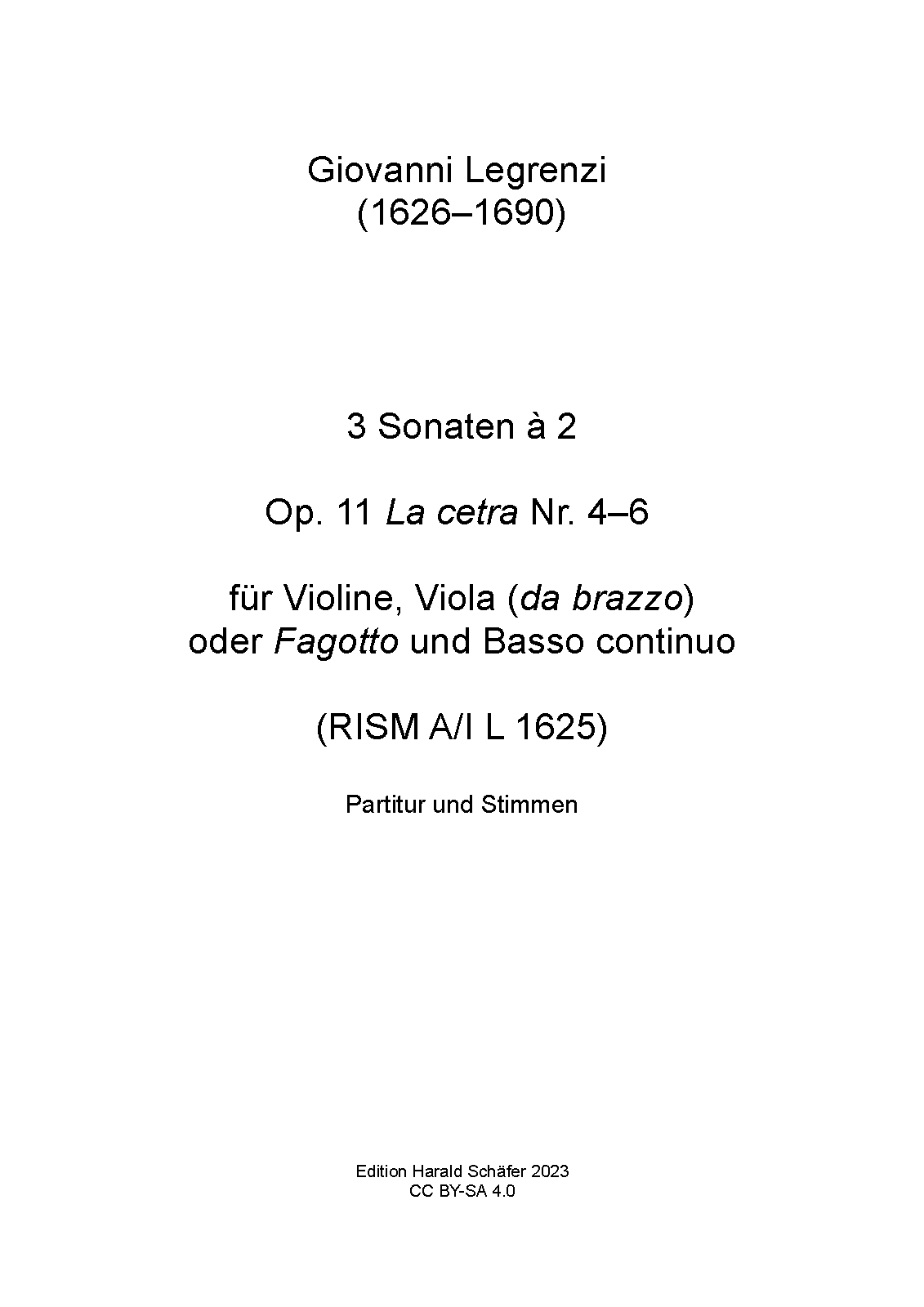 • The final two sonatas in this collection are unusual in several respects. They are Legrenzi's only works to specify the use of viols, and are printed with two sets of clefs, allowing for their performance in different keys depending on the instruments chosen, hence the instruction "O come piace", "or what you will" in the title.